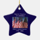 250º Aniversario 1776 a 2026, Estados Unidos de América, Ornamento de Árbol de Navidad. Declaración de Independencia a la espalda. Sostenemos que estas verdades son evidentes, que todos los hombres son creados iguales, que son dotados por su Creador de ciertos Derechos Inalienables, que entre ellos están la Vida, la Libertad y la búsqueda de la Felicidad. ¡Un gran hito para Estados Unidos! Foto de banderas norteamericanas ondeando en el viento, y texto patriótico hacen de esto un maravilloso keepsake - ¡un acontecimiento de una vez en la vida! Gran Navidad adorno con forma de estrella premium. Todos los derechos reservados © 2025 Alan & Marcia Socolik.