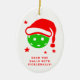Este Navidad de pickleball Ornament es un regalo perfecto para cualquier amante del pickleball. La parte delantera tiene un pickleball verde con un sombrero de Santa y un texto que dice "Deck the Halls with Pickleball". En la parte posterior, el diseño presenta un gráfico HO HO en el que la letra O se sustituye por un pickleball. Los colores son verde y rojo intenso.