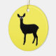 Una silueta de un ciervo parado al lado pero mirando hacia el espectador. El ciervo tiene grandes luces blancas en lugar de ojos.