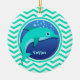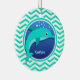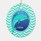 Guay, niños lindos océano, vida marina, diseño temático con delfín turquesa personalizado aqua sobre rayas de chevron verde, turquesa y blanco.
