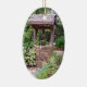 Ornamento cerámico ovalado con una imagen, a ambos lados, de un pintoresco deseando bien. Vea toda la colección de ornamentos de flores y plantas en la sección HOME.