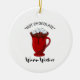 Deseos Cálidos Ornamento De Cerámica De Chocolate Caliente. Personalice el texto personalizado anterior. Los colores de fondo utilizados en esta tarjeta también se pueden personalizar. Puede encontrar elementos de coordinación adicionales en nuestra colección "Recetas de vacaciones".