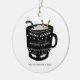 Ornamento navideño navideño con las palabras "Deseos más cálidos" en una taza de cacao caliente con canela y un bastón de caramelo. Personalice el texto personalizado anterior. También puede cambiar el color de fondo. Puede encontrar elementos de coordinación adicionales en nuestra colección "A Modern Illustrated Holiday".
