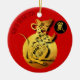 Composición con papel tradicional chino dorado cortado de Rat (imagen impresa) colocado frente a un círculo dorado, pequeñas letras modernas para el Año de la RAT 2020 y símbolo de Rat chino sobre un pequeño círculo negro. Diseño en ornamento cerámico redondo. Disponible con corte de papel de rata roja. Tarjeta de saludo, invitación y más. Perfecto para el Año Nuevo Chino de la Rata 2020.