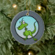 Pequeño y gracioso adorno cerámico en círculo de ilustracion de dinosaurios. Se pueden personalizar la fecha y el texto anteriores.