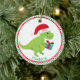 Adorno De Cerámica Dinosaurio verde con Santa Hat personalizado