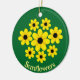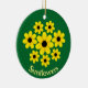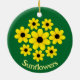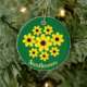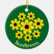 Ornamento de diseño de girasoles con texto de personalizable y color de fondo.