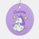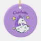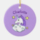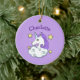Ornamento cerámico de diseño de unicornio con texto de personalizable y color de fondo.