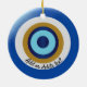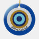 Diseño de ojos griegos adornado con cerámica. Puedes personalizar este adorno con el nombre de tu lugar favorito en Grecia o cualquier otro texto de tu elección. Si necesita ayuda para personalizar, póngase en contacto con nosotros a través del enlace de esta página. Ornamento personalizado de diseño ocular griego