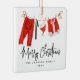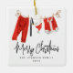 Funny Modern Christmas Ornament - Design presenta el dicho 'Feliz Navidad', una línea de lavado de ropa de santa claus, nombre familiar y año.