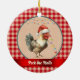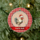 Este divertido adorno navideño de gallos "Peck the Halls" añade un poco de humor a tu decoración navideña o árbol de Navidad. Este encantador pollo con un sombrero de Santa añade algo de fantasía a un patio de labranza con un toque de diversión de las aves vacacionales. Una cuerda de luces cuelga sobre la cabeza del gallo, con una cadena parcial de luces colgando de su pico. El gallo es una mezcla de suizos con puntas finas y blancas, rodeados por una manta de gingham de estilo campestre. Puede cambiar el texto humorístico bajo el gallo, que aparece en crema a través de una cinta, como agregar su nombre o año.