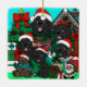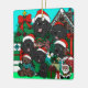 Perro de cachorro de Newfoundland con dibujos a mano y colores hermosos, presentado en una escena de mashup inspirada en Waldo. Elfos, osos de peluche, bufandas, santa, pan de jengibre y más, ¿qué se puede encontrar?
