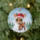Donner! Celebrate the holiday season with this festive round ceramic red ornament featuring an endearing woodland forest animal cartoon graphic of a cute baby reindeer wearing a Santa hat, and Merry Christmas written in white. Perfect deer with antlers for decorating your tree or as a thoughtful gift, this whimsical doe decor makes a cherished keepsake for years to come. Customize by changing the text, the font, the font color, or remove the text. You can even transfer this design onto other products. Enjoy this design your way! 🎄🦌