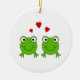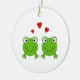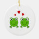 Adorno De Cerámica Dos ranas verdes con corazones rojos.