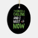 Funny diseño de cortadora de césped que dice: La hierba está llamando y yo debo mascar.