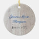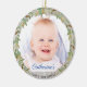 Celebra el primer cumpleaños de tu dulce bebé con este adorable ornamento de fotos de cumpleaños rústico. Este adorno para el primer cumpleaños presenta fondo de madera de granero gris claro con una corona de hojas botánicas bonitos. Personalice la foto de su bebé y su nombre en la parte delantera. En la parte de atrás, ponga el nombre completo de su bebé y la fecha de su cumpleaños. Es una idea de regalo perfecta para padres o abuelos como recuerdo personal.