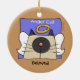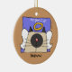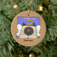 Ornamento conmemorativo de los ángeles gatitos siameses. El gato tiene alas y un halo. Diseño en fondo marrón claro. Añade el nombre de tu propio gato para personalizarlo. Diseño original de S. Fernleaf.