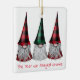 Tres Gnomes escandinavos vestidos con el Navidad Buffalo Plaid. El texto se puede personalizar.