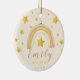 Este adorable diseño cuenta con un arco iris boho con estrellas de oro. El diseño trasero le da la opción de añadir la foto de su bebé para hacer el adorno aún más personal y especial!