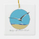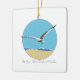 El adorno de cerámica con una imagen de gaviota marina bidimensional sobrevolando la playa con olas. Isla de Assateague - Mar Nacional en escritura en la parte inferior.