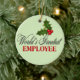 Ornamento de Navidad para tu empleado que tiene una baya roja y las palabras "el mayor empleado del mundo".