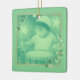 El adorno está decorado con un cuadro del pequeño tamborilero en tonos verdes con un borde dorado. La imagen está a ambos lados del adorno. La canción "Little Drummer Boy" me inspiró a crear la imagen.