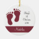 Este diseño presenta una huella de bebé junto con el texto que dice: "Primer Navidad del bebé (año). Puedes cambiar los Navidades y también el año. Su nombre puede ser personalizado en la parte inferior. En la parte trasera hay huellas que coinciden con el color de la parte delantera. Visita mi tienda para ver más opciones de color y otros productos con estas huellas.