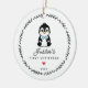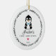 Sencillamente perfecto adorno navideño de 2 caras con un pequeño pingüino dulce vestido con corbata de arco con una corona de flores dibujada a mano moderna y un corazón diminuto.
