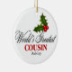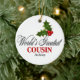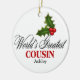 Ornamento de Navidad para un primo que tiene una bayeta roja y las palabras El primo más grande del mundo.