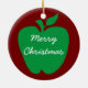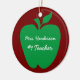 Los Navidades del profesor regalan adorno de cerámica, hecho en rojo con una gran manzana verde. Texto en blanco, en ambos lados está listo para personalizar para leer lo que usted quiere. Excelente idea de regalo para un profesor de este Navidad.