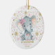 Este hermoso adorno navideño presenta el ilustracion acuático de un adorable chica de elefantes bebé rodeado de copos de nieve purpurinoso de color rosa, oro y plata. Los campos de texto son completamente editables.