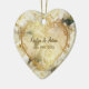 El magnífico keepsake floral presenta rosas blancas con un fondo dorado de fondo. El corazón enmarca el texto dorado para este elegante adorno de Bodas. Personalizar el nombre de las áreas de texto y fecha.
