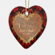 Gordas rosas rojas con marco dorado de corazón con texto dorado para este adorno de honor de 50 años. Las rosas rojas son un símbolo eterno de amor y pasión. Personalizar el nombre del texto y la fecha.