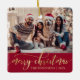 Adorno De Cerámica Elegant Gold Merry Christmas Script Photo Red