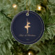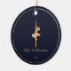 Personalize this modern and elegant 'My First Christmas' ornament with your baby girl's photo, her name, and the year of her birth. Featuring a modern dark-blue background and a delicate pattern of graceful ballerina. Photo tip: crop photo to a square format before uploading to the site.