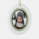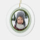 Celebra la primera fiesta de tu pequeña con este adorno de fotos de la primera Navidad de este bebé. La parte delantera incluye una foto con un borde verde moderno y sencillo, mientras que la parte trasera incluye espacio para un nombre y un año. Un placer eterno para el tesoro en los años venideros.