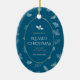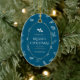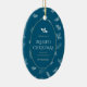 El elegante invierno blanco deja adorno con un mensaje personalizado y un nombre familiar, sobre un fondo azul. Amplio espacio disponible para un mensaje personalizado.