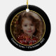 Celebre la temporada navideña con este adorno navideño de oro y negro de doble cara que combina la elegancia y la sofisticación con la personalización moderna. La parte delantera presenta una hermosa tipografía de letra cursiva que dice "Tenga una Feliz Navidad" acentuada con estrellas y copos de nieve brillantes, además de espacio para agregar el año actual. La parte trasera presenta una foto personalizable más texto adicional. Este diseño sofisticado añadirá un toque de elegancia a su decoración navideña. Personalice este diseño agregando un nombre, fecha y una foto preciada para crear un regalo considerado o un recuerdo preciado para cualquiera en su lista de compras.