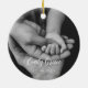 Este impresionante ornamento fotográfico redondo captura la magia de la primera navidad familiar con su recién nacido en un diseño elegante y minimalista. La foto en blanco y negro aporta un toque atemporal y elegante, mientras que la tipografía limpia y sencilla realza su sofisticado aspecto.