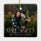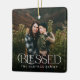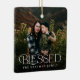 Este elegante ornamento fotográfico navideño luce una tipografía de estilo moderno, que dice "Bendito" en el fondo. Contiene plantillas de fotos separadas para la parte posterior y la parte delantera, así como plantillas de texto para el nombre y el año. ¡Qué manera perfecta de recordar lo mucho que tienes que estar agradecido y de celebrar a tu familia especial!