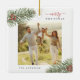 Nuestro sencillo y elegante adorno cerámico cuenta con un hermoso ilustracion acuático de una rama de pino y letras modernas con su foto y nombre de personalizable.