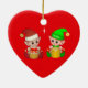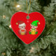 Lindos elfos de Navidad en fondo rojo Adorno de cerámica. Se cree que los elfos son ángeles de la tierra. ¡Que tengas una maravillosa Navidad!
