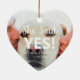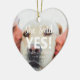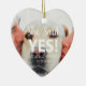 Invitación de compromiso texto blanco lindo corazón personalizado de texto foto Navidades de texto de cerámica ornamento. Texto del personalizable ¡Ella dijo que sí! Puedes personalizar el texto y la foto y convertirla en tu propio