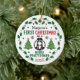 Esta doble cara de Personalizado Personalizada Enfermera Profesional Ornamento de Navidad con la cita "Primera Navidad como Enfermero Profesional" tiene la opción de ser personalizado a su nombre y año preferidos, y es una idea de regalo perfecta para las vacaciones. En la parte trasera de este Ornament hay una romántica acuarela con Navidades nevados. Asegúrese de consultar todas las demás Profesiones con este diseño.