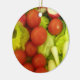 Este adorno de estilo bonito presenta una fotografía de una mezcla de ingredientes de ensalada en un colador. La deliciosa foto incluye tomates, rábanos, cebollas de primavera y lechugas. Hay texto verde personalizable en la parte posterior para que escriba su propio mensaje personal.