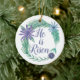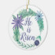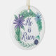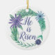 Él es Risen. Un hermoso adorno religioso de Navidad con una hermosa corona floral de morado y verde. Estas hermosas flores acuarelas se alegran en Jesucristo. Regalo cristiano bonito.
