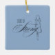 El diseño presenta la enriquecedora frase "Ella es fuerte", estilizada en una tipografía elegante y audaz que encarna fuerza y resiliencia. Las letras son negras contra un fondo blanco y nítido, creando un sorprendente contraste que llama la atención. Al lado del lema, un minimalista dibujo de una mujer que se va agrega un sentido de movimiento y libertad. Su silueta es fluida y aún definida, capturando tanto la gracia como la fuerza, enfatizando el mensaje de los proverbios 31:25. La simplicidad de la paleta en blanco y negro aumenta el impacto de la obra de arte, permitiendo a los espectadores reflexionar sobre el significado más profundo de fuerza y empoderamiento que resuena con el verso bíblico.