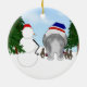 Viejo diseño inglés único del país de las maravillas del invierno del perro pastor. Perro pastor con un pedazo de la nieve en su nariz y rodeada por los conejos. El muñeco de nieve feliz mira encendido. Para rechazar el frío que el perro pastor tiene en una bufanda y un gorra que sean los colores de su país.
