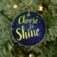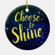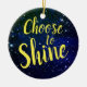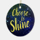 Un adorno muy lejano con un fondo estelar y las palabras "Elegir brillar" en escritura amarilla.