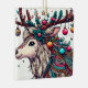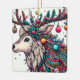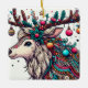 Este animado ilustracion cuenta con un reno adornado con intrincadas decoraciones navideñas. Sus cantos se transforman en un espectáculo festivo, adornado con bayas, adornos y estrellas brillantes. La cabeza de los renos está decorada con coloridos motivos y cuentas, que capturan la alegría y la magia de las vacaciones.